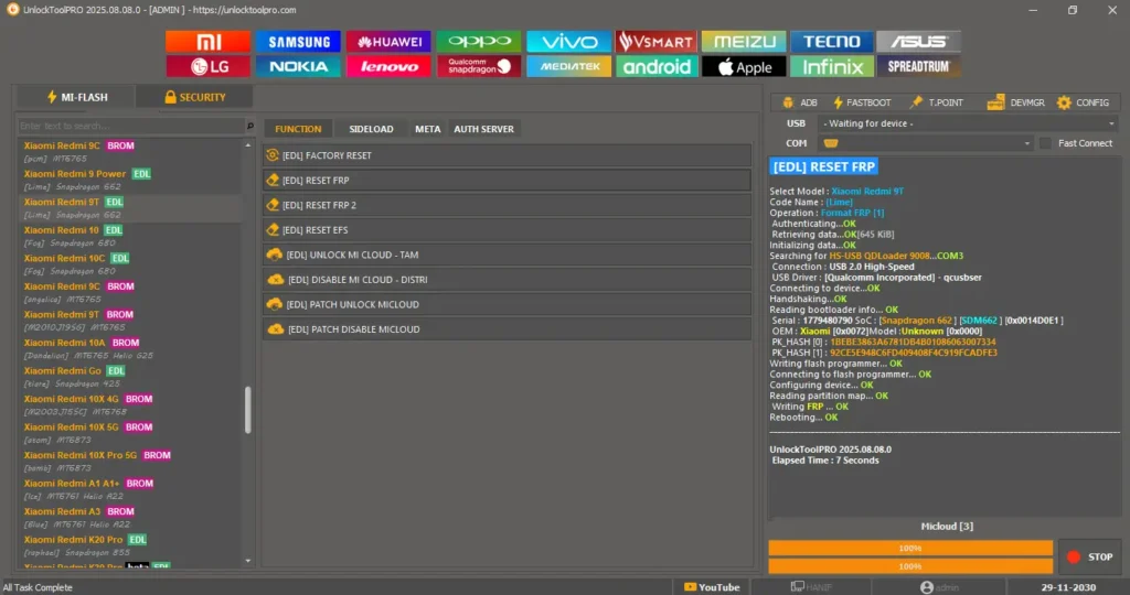UnlockToolPRO (Update – 18 December 2025) is a powerful mobile servicing tool made for technicians who work with Oppo, Realme, Xiaomi, Poco, Redmi, and BlackShark devices. This update adds new support for many Oppo phones, introduces a new method for Realme Unisoc models, and fixes Qualcomm connections for Xiaomi, Poco, and BlackShark devices.