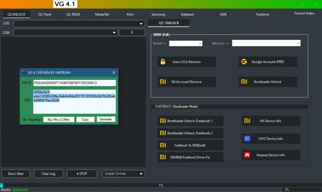 VG Tool 4.1 is a lightweight yet powerful Windows utility designed to fix and manage a wide range of Android devices, including Samsung, Xiaomi, OPPO, VIVO, and more. It offers essential functions like formatting, FRP bypass, flashing, and even supports Kirin-based devices. Although VG Tool normally requires a paid license, UMI Mobile has released a free Keygen that allows users to activate and use the tool without any cost.